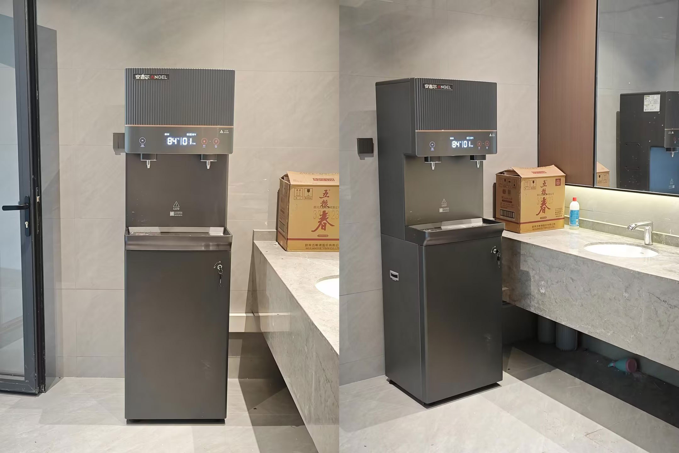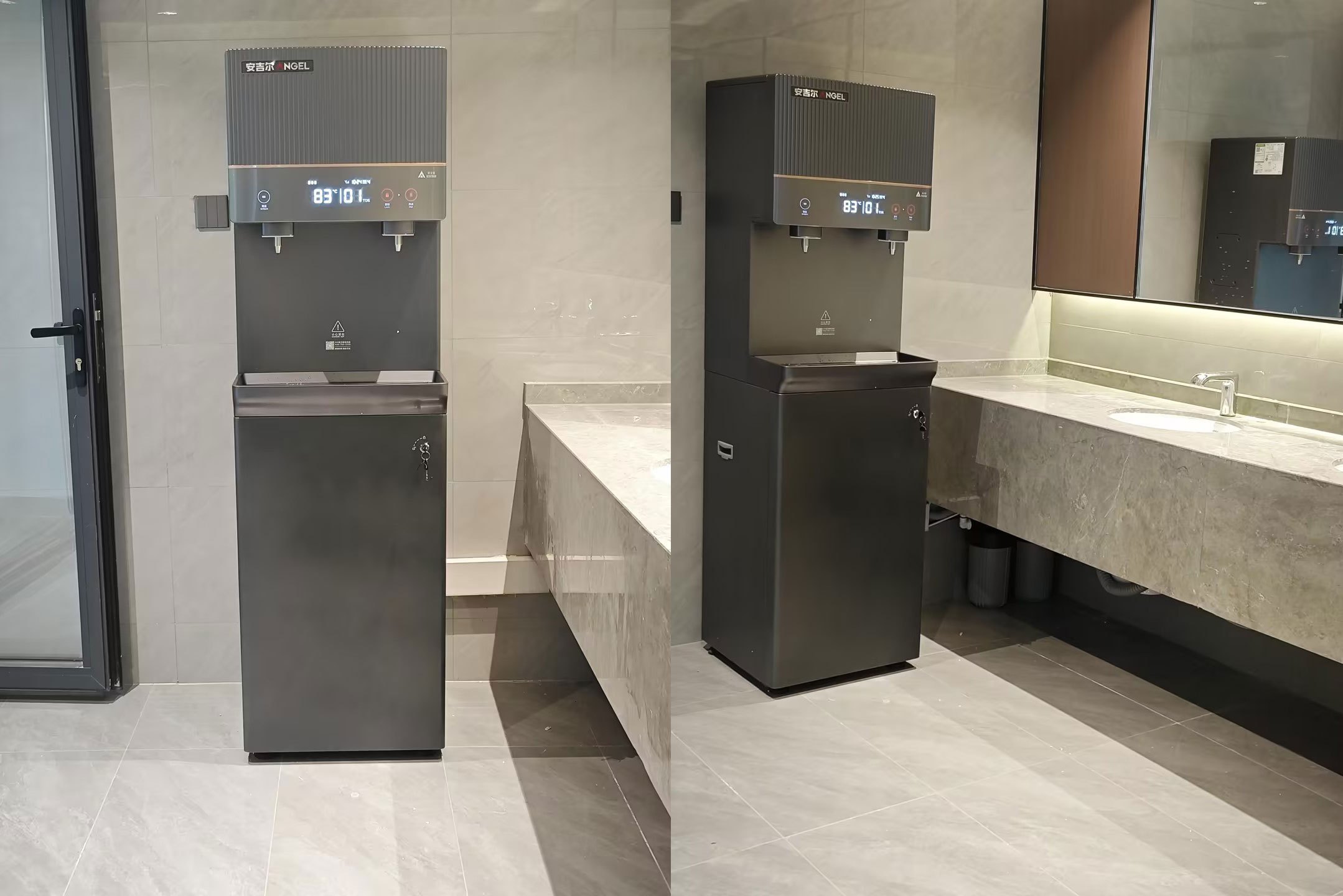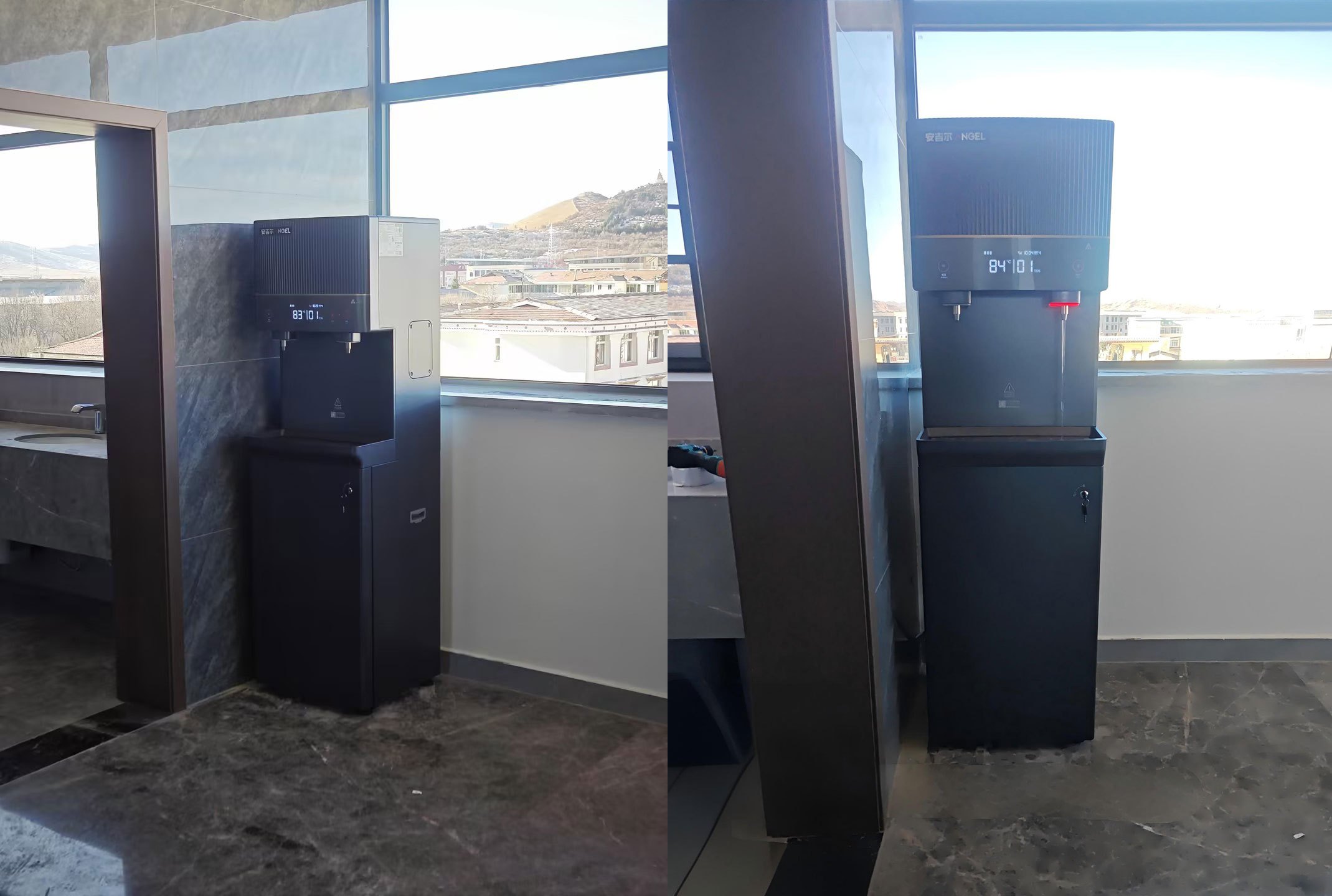 核心净水设备:安装3台安吉尔AHR3688-1030K2商用直饮水机。该机型出水量大,可满足集中办公场所的饮水需求,并内置反渗透等精密过滤系统,确保终端饮水安全。